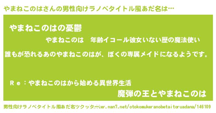 | ヘコむあだ名 | 『やまねこのは(小並感)』『やまにゅー』 |