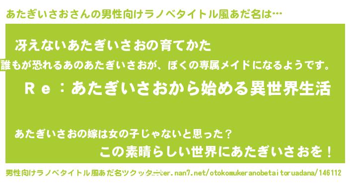 | 意味不明あだ名 | 『自称あたぎいさお』 |