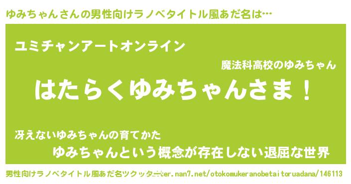 | ファンタジー風あだ名 | 『ユミフェル』『ユミディッシュ』 |