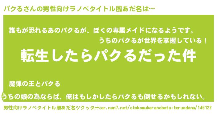 | 胡散臭い通販商品みたいなあだ名 | 『来世でも幸せになれる健康食品…その名も「パクる」』 |