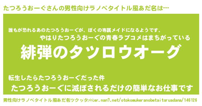 | 胡散臭い通販商品みたいなあだ名 | 『絶対に幸福をもたらす健康食品…その名も「たつろうおーぐ」』 |