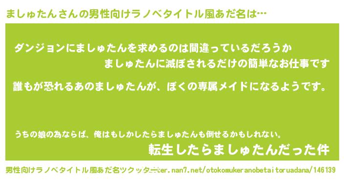 | 胡散臭い通販商品みたいなあだ名 | 『前代未聞の健康食品…その名も「ましゅたん」』 |