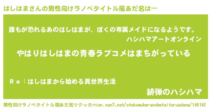 | 女子向けラノベタイトル風あだ名 | 『はしはまの雑貨屋さん』 |