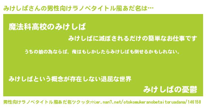 | 女子向けラノベタイトル風あだ名 | 『みけしば伯爵の花嫁』 |
