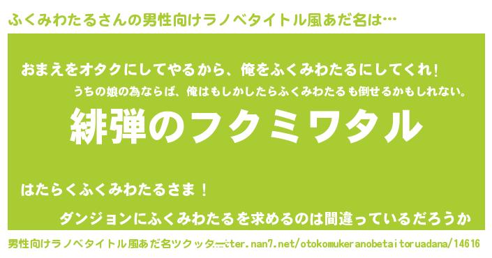 | 胡散臭い通販商品みたいなあだ名 | 『100人中100人が認めたイリジウム磁石…その名も「ふくみわたる」』 |