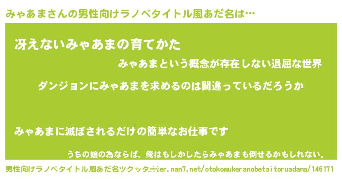 | 胡散臭い通販商品みたいなあだ名 | 『信頼と実績のペンダント…その名も「みゃあま」』 |