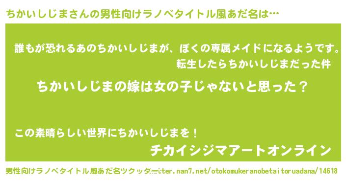 | 女子向けラノベタイトル風あだ名 | 『ちかいしじま様がみてる』 |