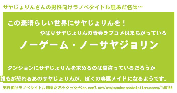 | 女子向けラノベタイトル風あだ名 | 『死神サヤじょりんの再婚』 |