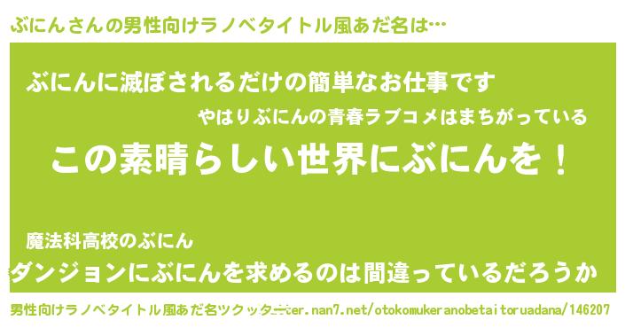 | ピコ太郎風あだ名 | 『ブニ史郎』『ピブ四郎』『ブコ三郎』 |