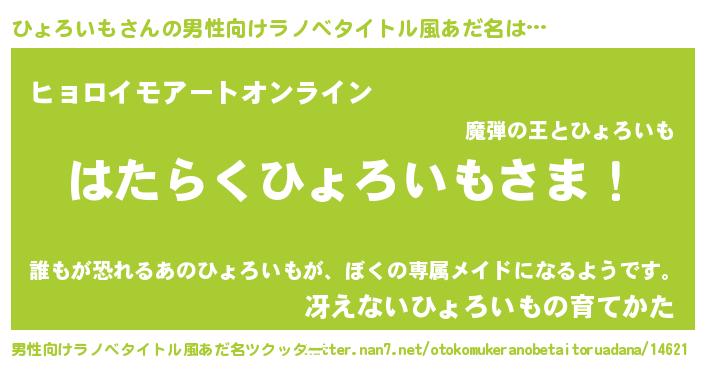 | ヘコむあだ名 | 『ひょにゅー』『ひょろいも(遠い目)』 |