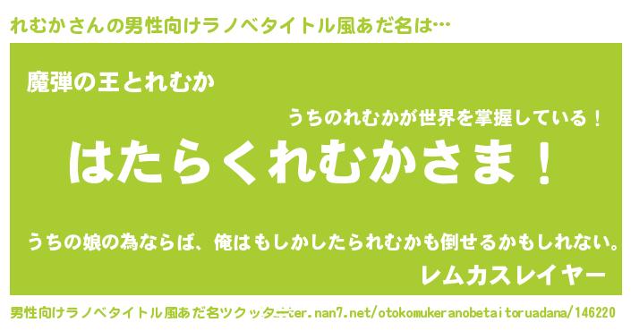 | ヒーロー風カッコイイあだ名 | 『仮面レムダー』『ウルトラれむかマン』 |