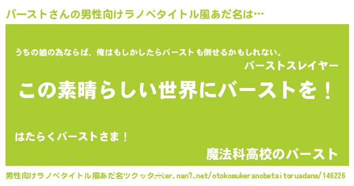 | 女子向けラノベタイトル風あだ名 | 『悪役バーストに転生したようですが、知った事ではありません』 |