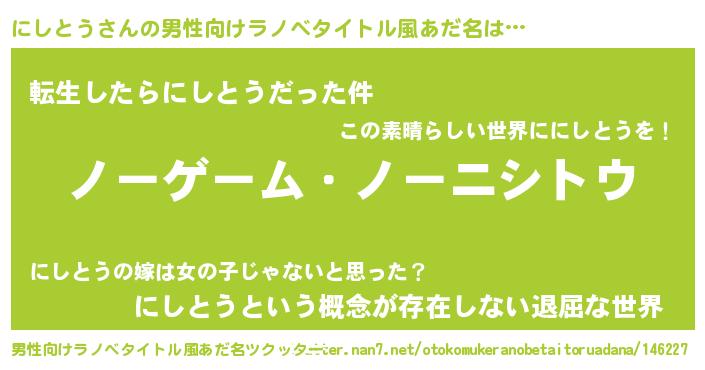 | ピコ太郎風あだ名 | 『ニニ太郎』『ピコニ郎』『ニシ十郎』 |