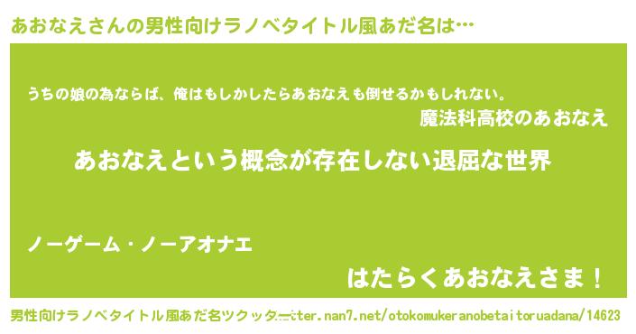 | 女子向けラノベタイトル風あだ名 | 『異世界で失敗しない100のあおなえ』 |