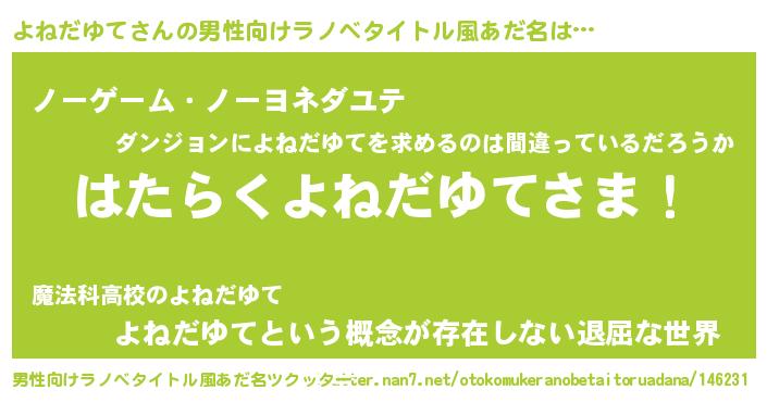 | ヘコむあだ名 | 『よねだゆて(遠い目)』『よねぷりん』 |