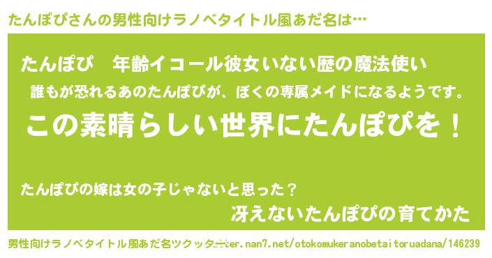 | 女子向けラノベタイトル風あだ名 | 『乙女ゲームの破滅フラグしかない悪役たんぽぴに転生してしまった…』 |