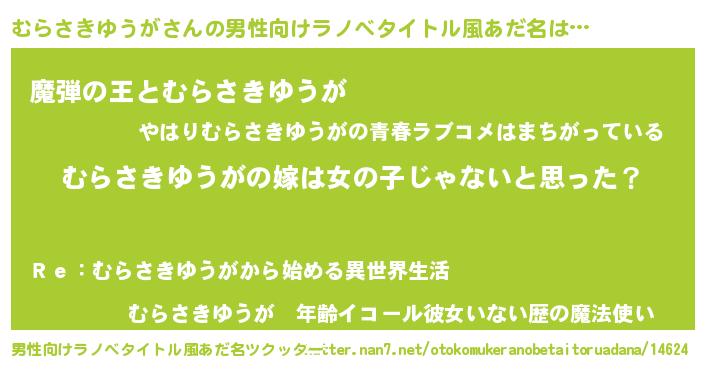 | ポケモン風あだ名 | 『ヒムラサキユウガ』『ムーライ』 |