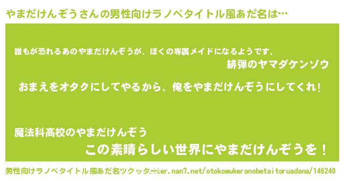 | ヘコむあだ名 | 『やまだけんぞう(笑)』『レバニラ』 |