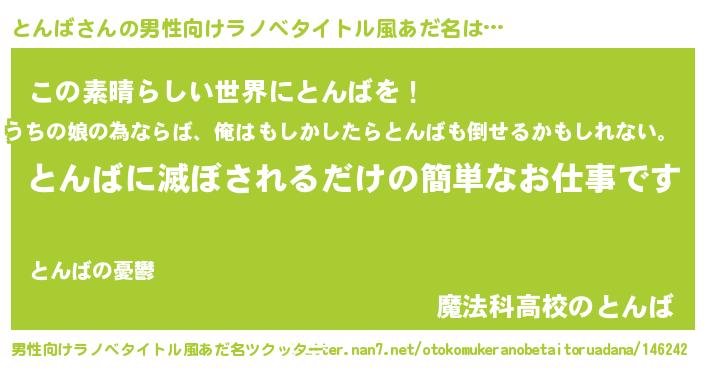 | 胡散臭い通販商品みたいなあだ名 | 『世界中を虜にした100年もののヴィンテージワイン…その名も「とんば」』 |