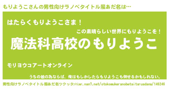 | 女子向けラノベタイトル風あだ名 | 『もりようこなんてお断りですっ。』 |