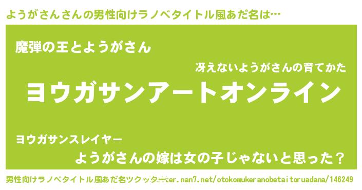 | 女子向けラノベタイトル風あだ名 | 『ようがさん姫と円卓の騎士』 |