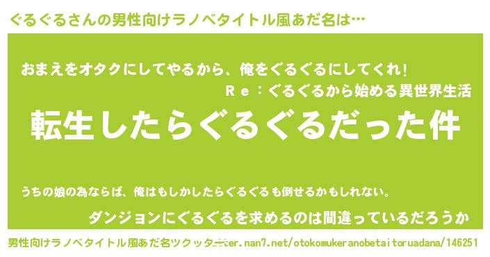 | 意味不明あだ名 | 『たけのこ科ぐるぐる属』『自称ぐるぐる』 |