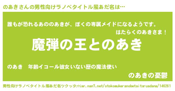 | ヘコむあだ名 | 『のあき(震え声)』『のあにゅー』 |