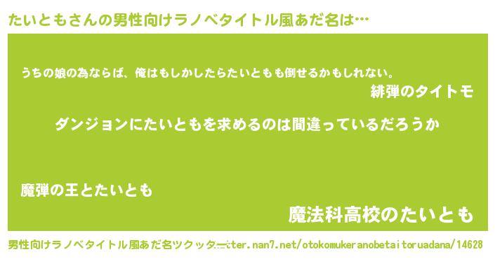 | ヒーロー風カッコイイあだ名 | 『魔戒騎士タイ』『ウルトラたいともマン』 |