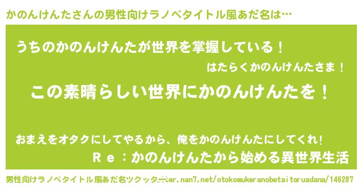 | 女子向けラノベタイトル風あだ名 | 『悪役かのんけんたに転生したようですが、知った事ではありません』 |