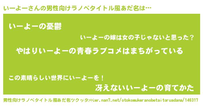 | 女子向けラノベタイトル風あだ名 | 『いーよーの雑貨屋さん』 |