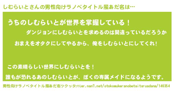 | 女子向けラノベタイトル風あだ名 | 『しむらいと夫妻のなれそめ』 |