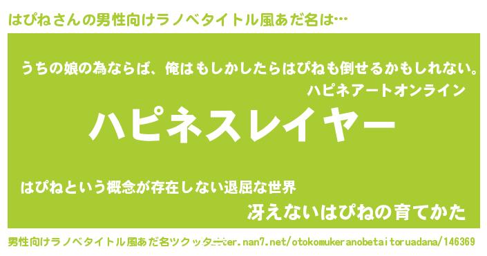 | ヒーロー風カッコイイあだ名 | 『ウルトラはぴねマン』『スーパーハピネ』 |