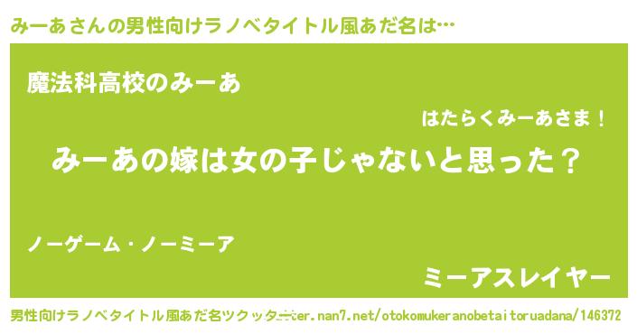| 意味不明あだ名 | 『とにかく怪しいみーあ』『自称みーあ』 |