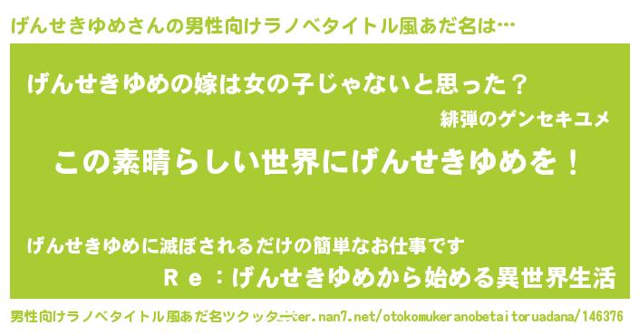 | 伝説のあだ名 | 『覚醒した遊び人げんせきゆめ』 |