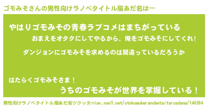 | 胡散臭い通販商品みたいなあだ名 | 『信頼と実績のサプリメント…その名も「ゴモみそ」』 |
