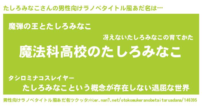 たしろみなこさんの男性向けラノベタイトル風あだ名をツクッター!