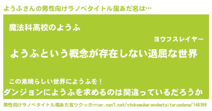 | 意味不明あだ名 | 『永久保存ようふ』『自称ようふ』 |