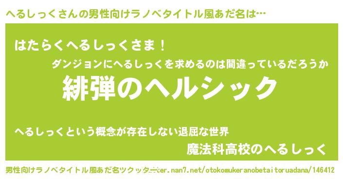 | ヘコむあだ名 | 『へるっちょ』『へるしっく(笑)』 |