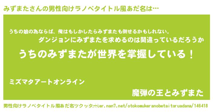 | 胡散臭い通販商品みたいなあだ名 | 『運命の人と巡り会える高級そうな絵画…その名も「みずまた」』 |
