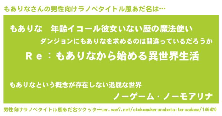 もありなさんの男性向けラノベタイトル風あだ名をツクッター!