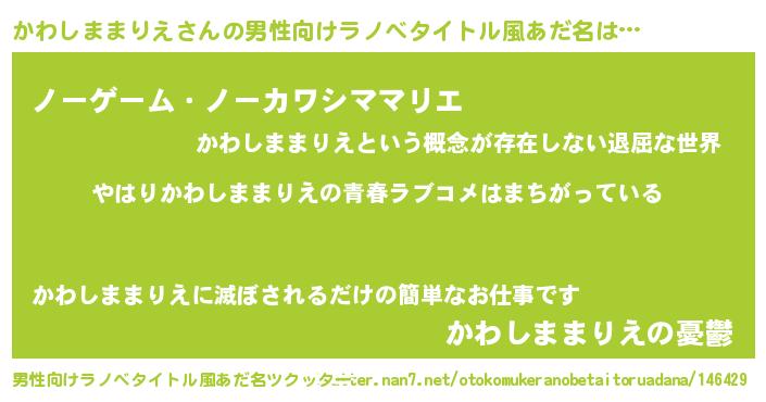 | ファンタジー風あだ名 | 『エターナルカワシママリエー』 |