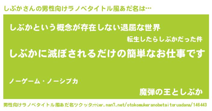 | 意味不明あだ名 | 『永久保存しぶか』『めかぶ科しぶか属』 |
