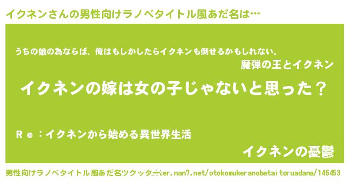 | ヒーロー風カッコイイあだ名 | 『炎刃騎士イク』『ウルトライクネンマン』 |