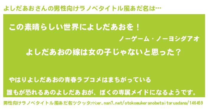 | 女子向けラノベタイトル風あだ名 | 『よしだあお様がみてる』 |