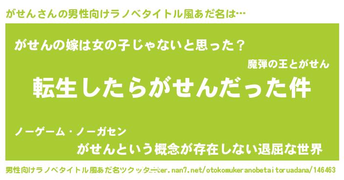 | ヘコむあだ名 | 『がせ太郎』『がせん(苦笑)』『豆乳』 |