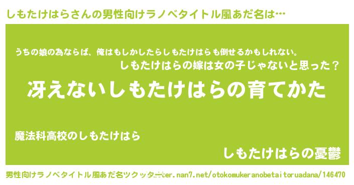 | 胡散臭い通販商品みたいなあだ名 | 『世界が平和になる高級そうな皿…その名も「しもたけはら」』 |