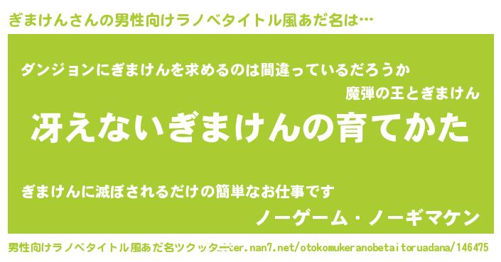 | 胡散臭い通販商品みたいなあだ名 | 『伝統あるサプリメント…その名も「ぎまけん」』 |