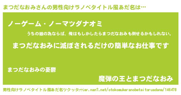 | 女子向けラノベタイトル風あだ名 | 『横柄まつだなおみと宰相陛下』 |