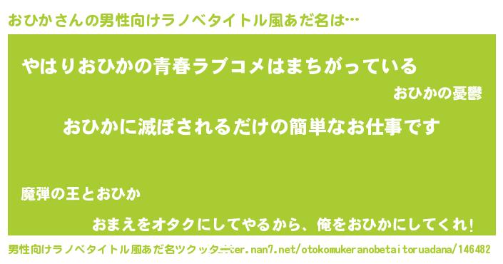 | ヒーロー風カッコイイあだ名 | 『ウルトラおひかマン』『スーパーオヒカ』 |