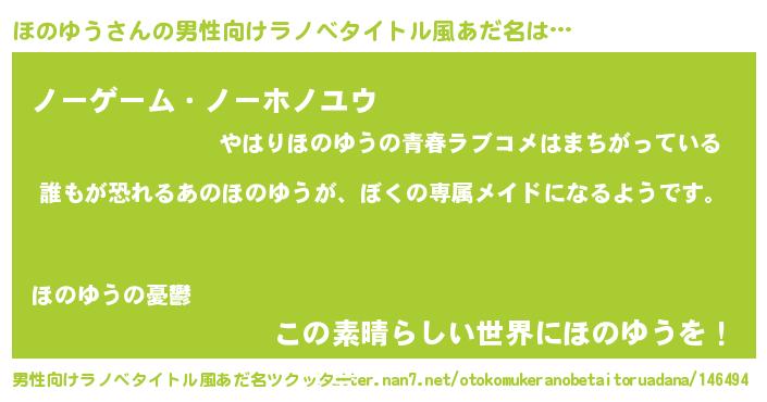 | 胡散臭い通販商品みたいなあだ名 | 『前代未聞の健康食品…その名も「ほのゆう」』 |